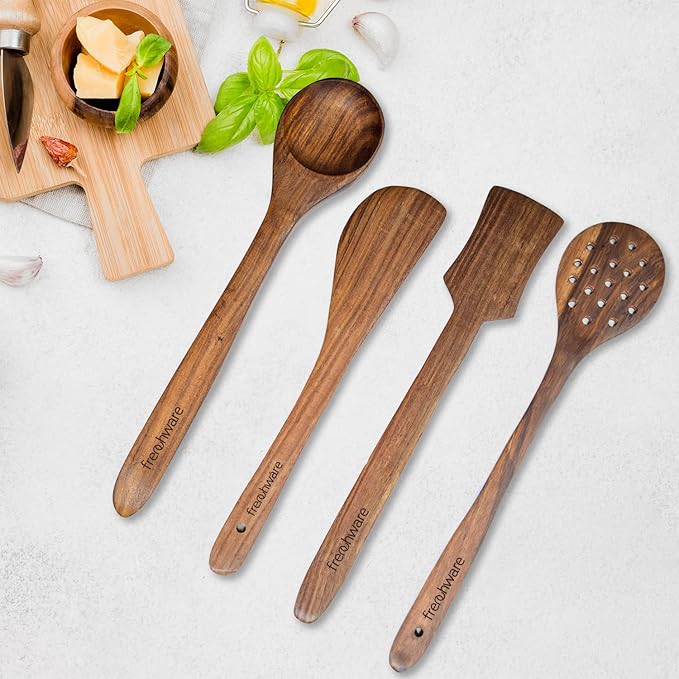 No reviews$15.99 USD You are only $34.00 USD away from Free Shipping.Frenchware Set of 4, Brown | Pure Sheesham Wood Spoons and Spatula for Non Stick Cookware Used for Cooking, Baking & Mixing
