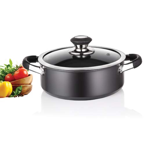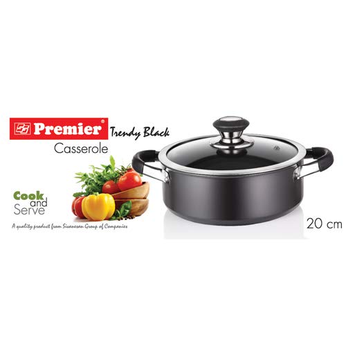 Premier Hard Anodised Trendy Black Casserole Cook&Serve with Glass Lid 20cm Code-109040 - 1098 gms