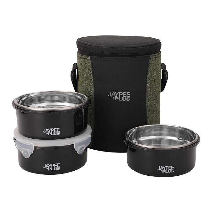 Jaypee Plus Stainless Steel Inner Micropac 2 Container Lunch Box 400 ml Black